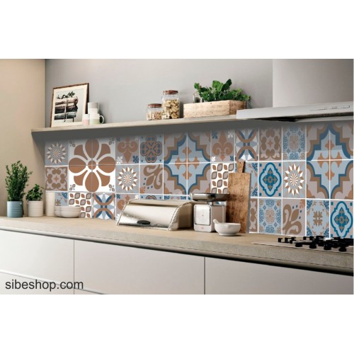 Adesivi per piastrella quadrata in vinile (pvc polimerico), con design vintage tipo cementine.