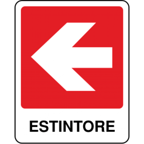 Segnale con indicata la direzione da seguire per raggiungere estintore disponibile in alluminio stampato o in versione autoadesiva.