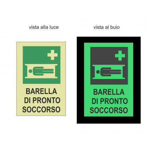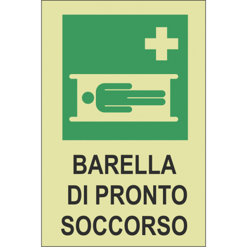 Il segnale fa parte della segnaletica aziendale di emergenza segnala l'ubicazione della barella di pronto soccorso.