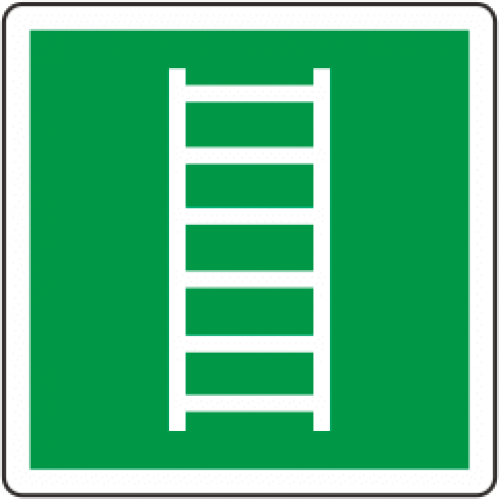 Segnaletica di emergenza e salvataggio con simbolo "scala di evacuazione," indica dove si trova la scala di emergenza, disponibile in alluminio stampato o in versione autoadesiva.