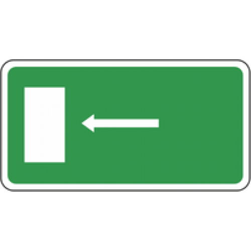 Segnale con indicazione uscita d'emergenza "uscita emergenza verso sinistra" disponibile in alluminio stampato o in versione autoadesiva.